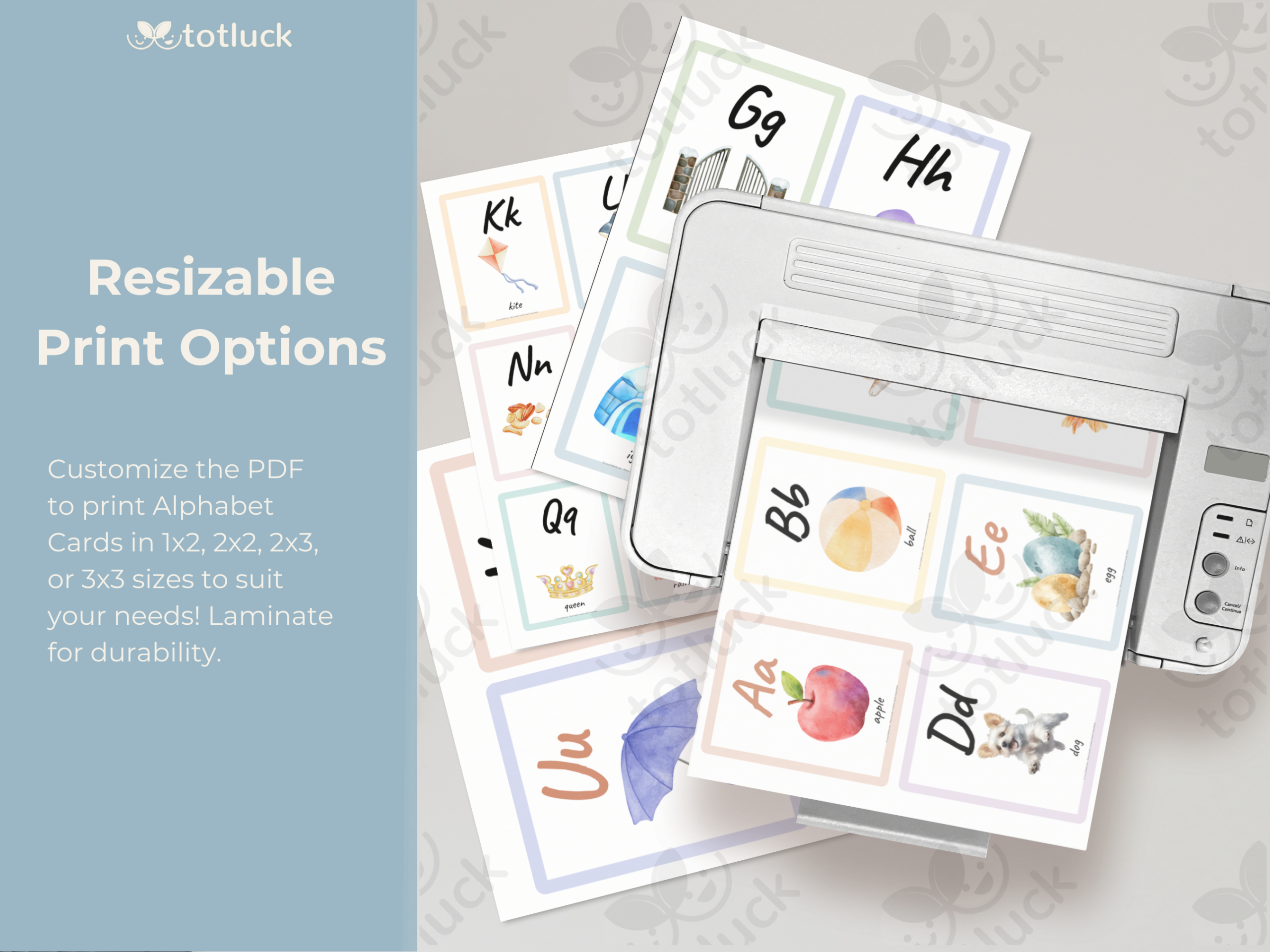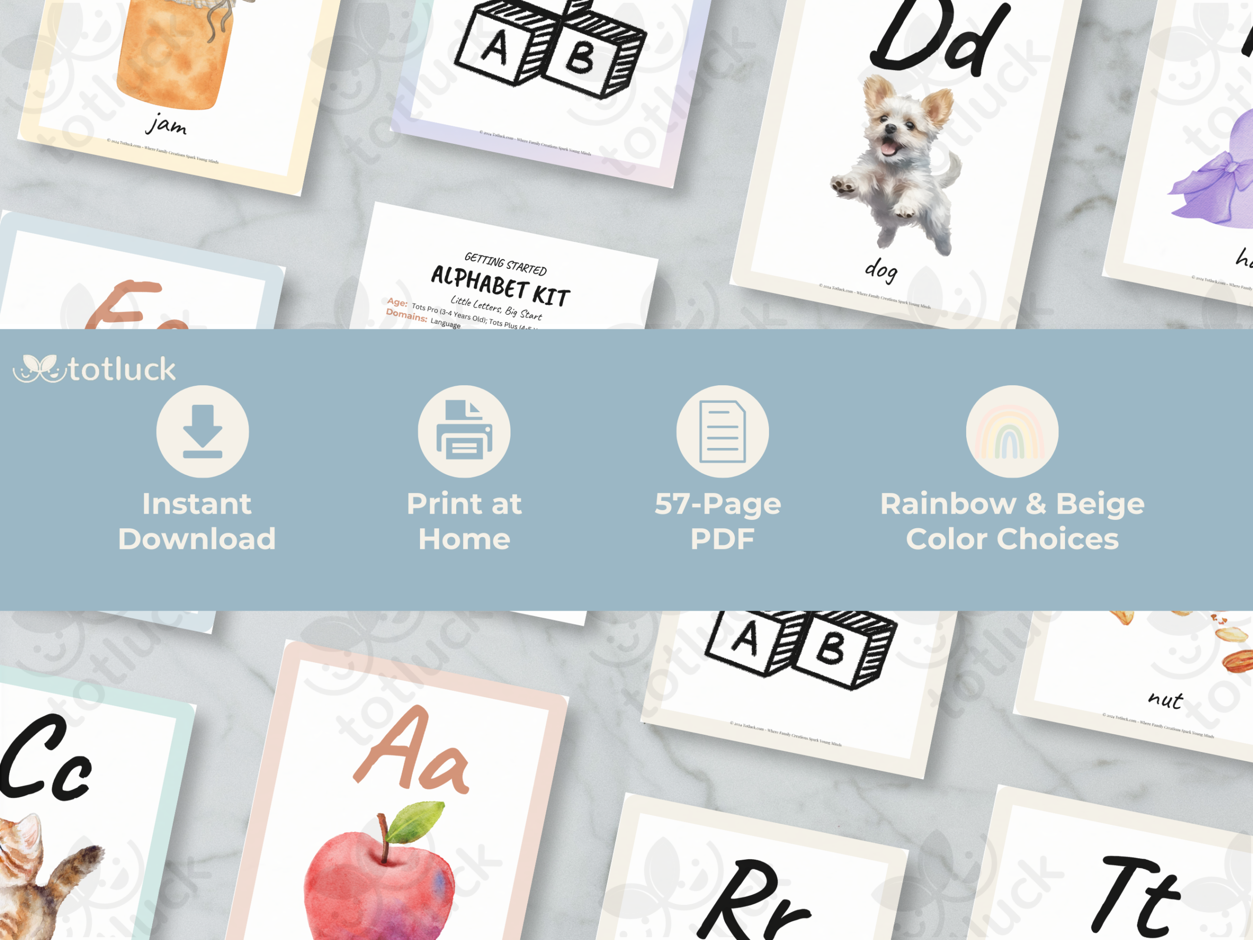 When I was teaching PreK, I always wanted an aesthetically pleasing set of alphabet posters and cards that could be used in versatile ways. That’s why I created this kit! Perfect for ages 3-5, it blends functionality with beauty, offering tools to teach early literacy, including letter names, sounds, and everyday object connections.