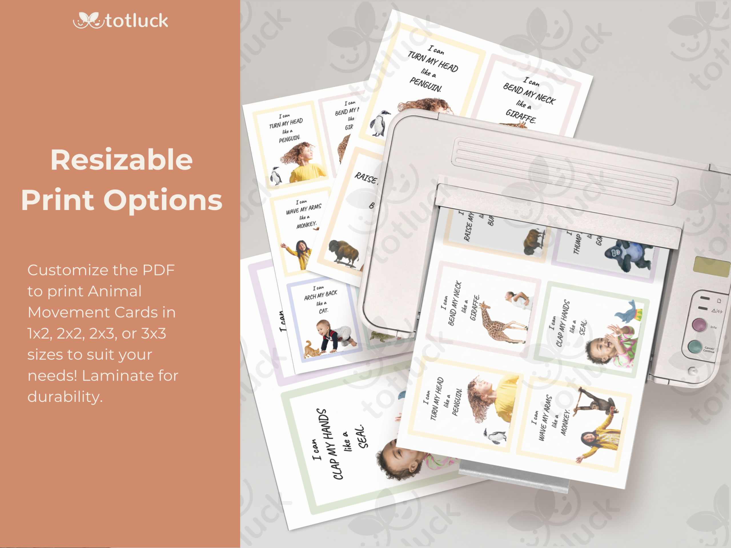 The cards are fantastic—cute, engaging, and a great way to get my little one moving. But I wish there were clearer instructions on printing different sizes. Figured it out eventually, but a quick guide would help!