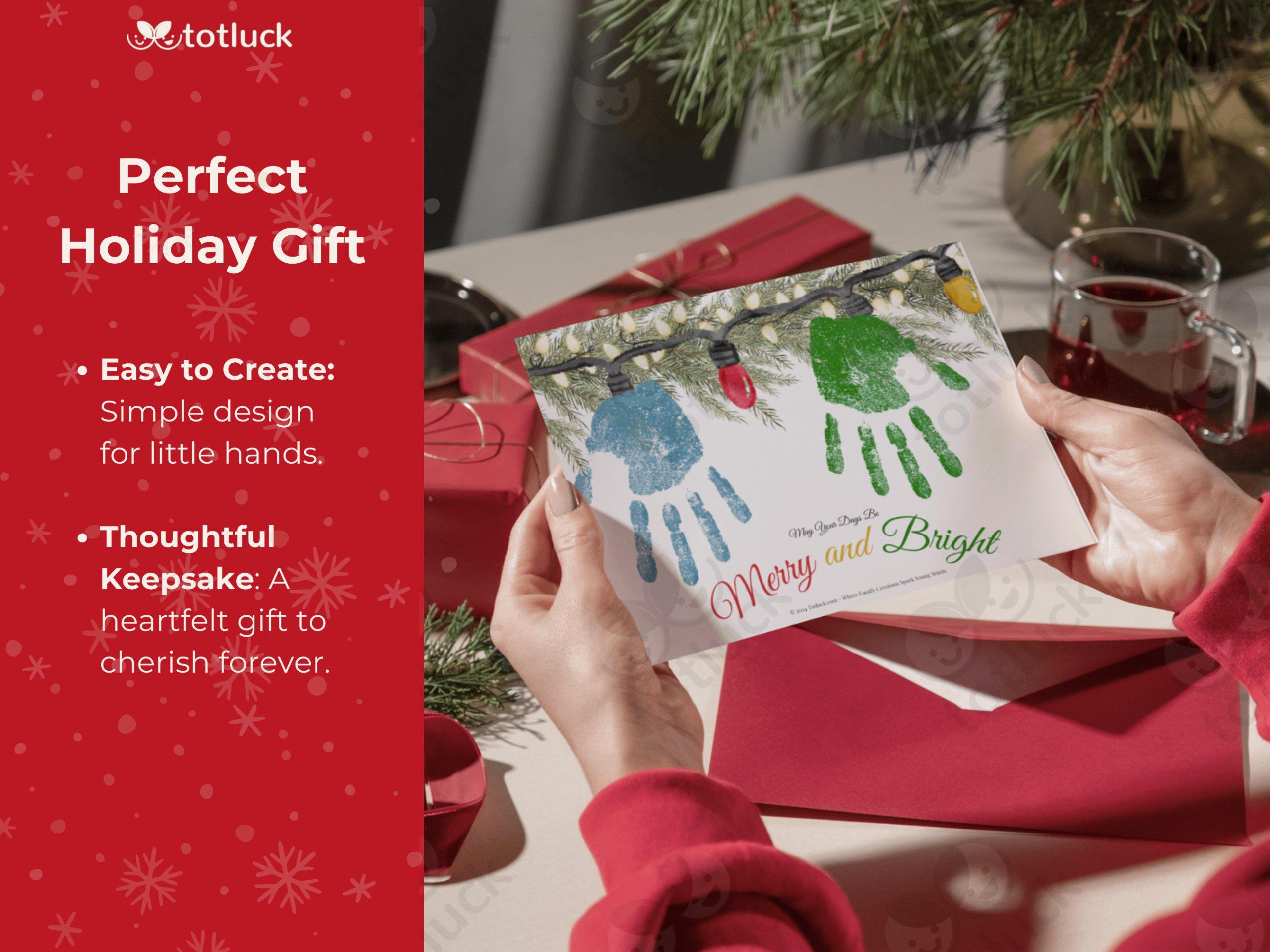I originally created this handprint art for my son’s daycare teacher and grandparents, and it was such a hit! It’s a heartfelt, holiday-neutral keepsake that’s perfect for anyone special in your life. Simply add your child’s handprint with washable paint, and you’ve got a thoughtful, kid-made gift that they’ll cherish forever.