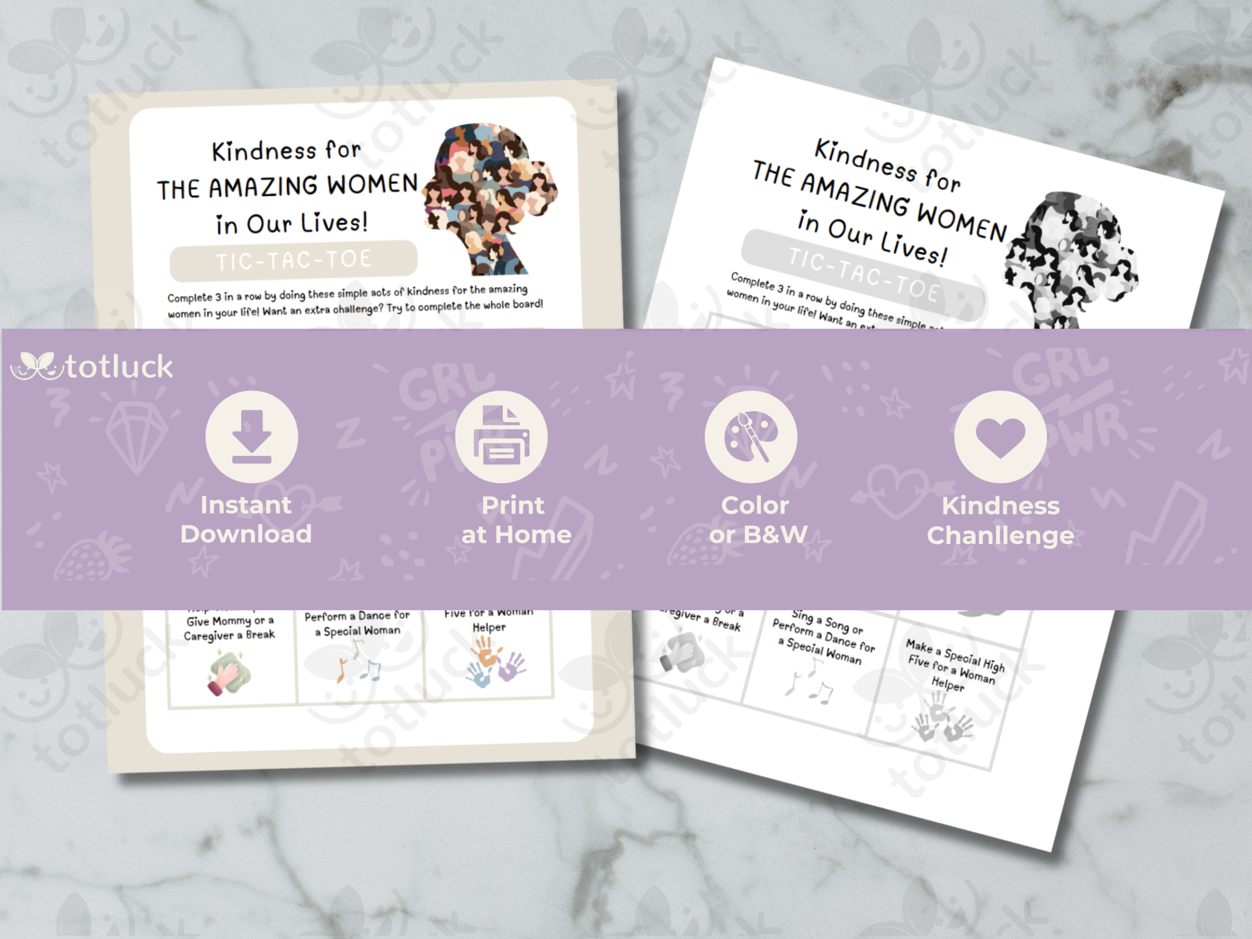 Celebrate International Women’s Day with this fun Kindness Tic-Tac-Toe! Kids complete acts of kindness—reading together, helping out, sharing, saying thank you, giving hugs, and so much more—to win the game. Comes in color and black & white for easy printing!