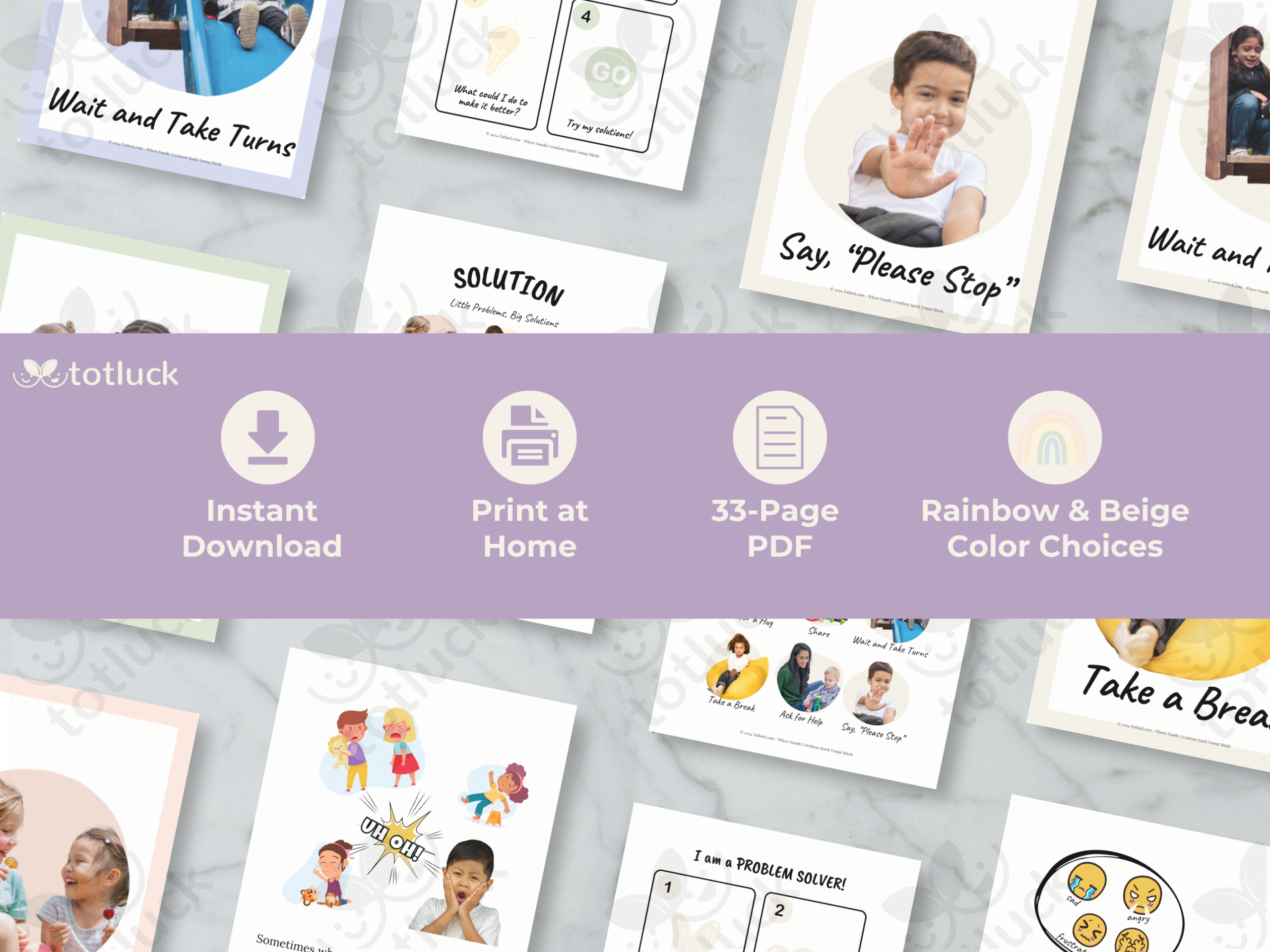 Help your child navigate everyday social interactions with confidence using the Problem-Solving Kit! This fun, interactive resource promotes positive behavior and emotional growth through social stories, strategy cards, and visual guides. Perfect for ages 3-5, it’s ideal for classrooms, homeschool, or family time, encouraging cooperation, turn-taking, and problem-solving in a relatable way.